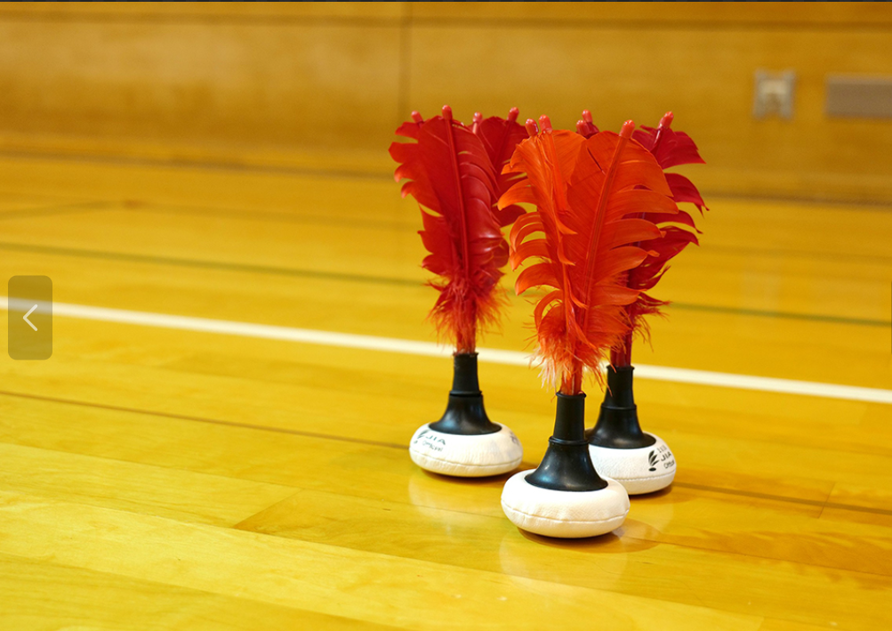 メッセージ 幅広い年齢層の仲間が体育館で赤い羽根を追いながら楽しく汗を流しています。